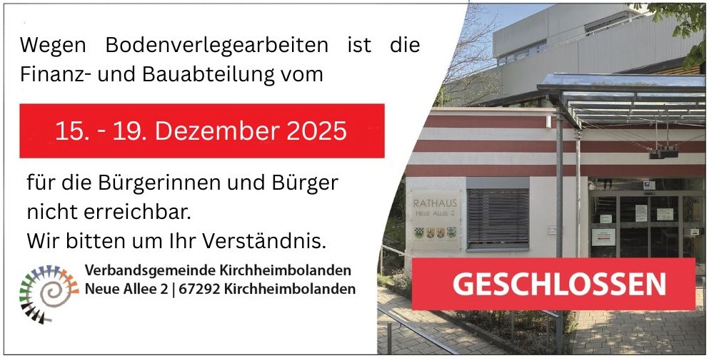Finanz- und Bauabteilung geschlossen vom 15. - 19. Dezember 2025.