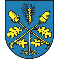 In Blau ein bewurzelter goldener Getreidehalm, belegt von zwei gekreuzten goldenen Eichenzweigen mit je einer goldenen Eichel und zwei goldenen Eichenblättern.