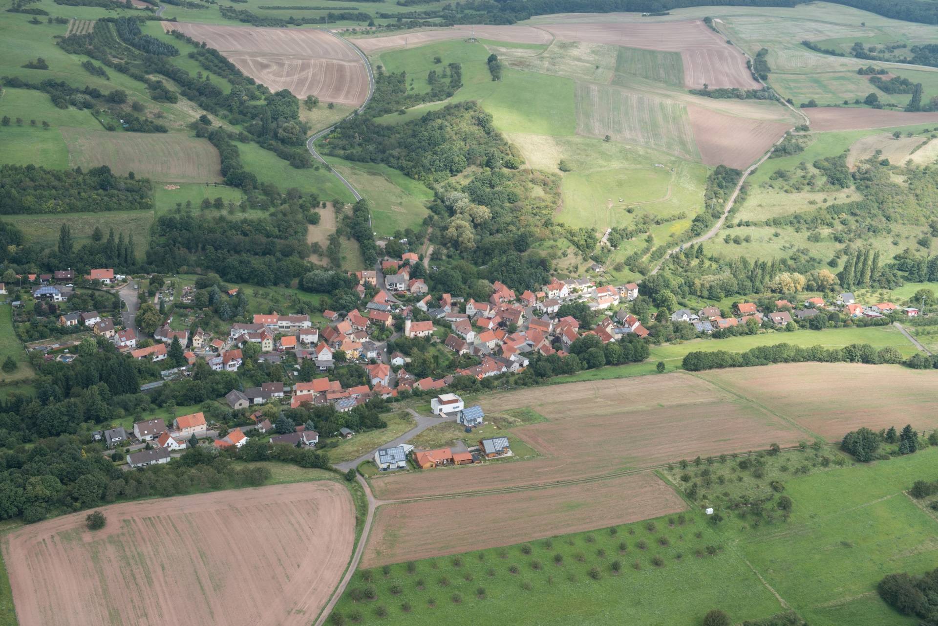 Dieses kleine Dorf, ganz nahe am Donnersberg-Massiv, hat eine idyllische Lage. Eingekuschelt ist es in ein Tal, das bei aller Kleinheit noch wieder unterteilt ist in Seitentäler, so dass sich ein lebhaftes Auf und Ab ergibt.
