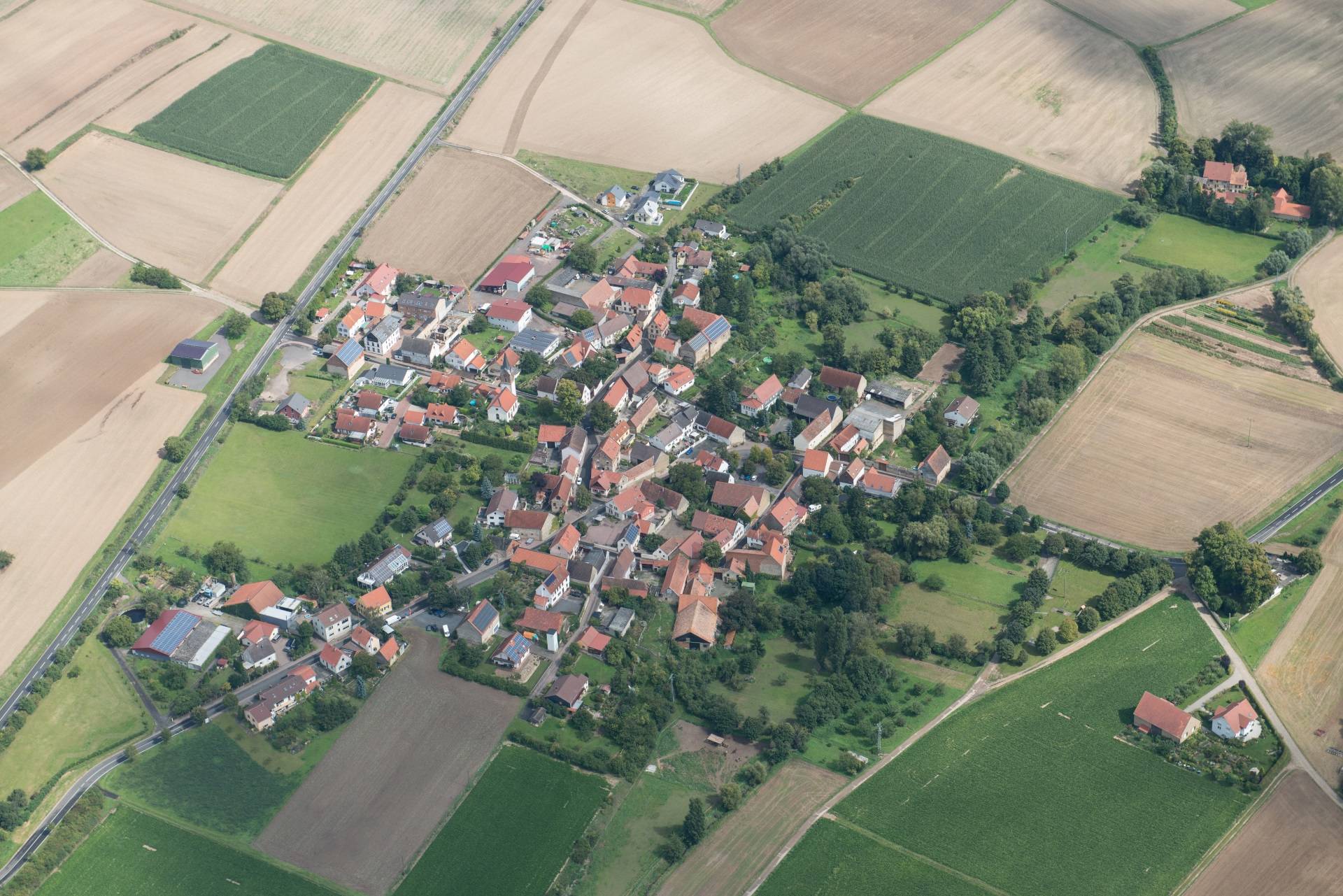 Zu beiden Seiten des Tals steigen die Höhen um fast 100 Meter an. Wie beim einem "V", das in die Landschaft geschrieben ist, gehen die Feldwege hinter dem Dorf bergauf. Ein wenig Weinbau finden wir übrigens auch hier, die Lage "Hochstein", so dass es nicht verkehrt ist, wenn der "Weinwanderweg Zellertal" den kleinen Ort berührt.