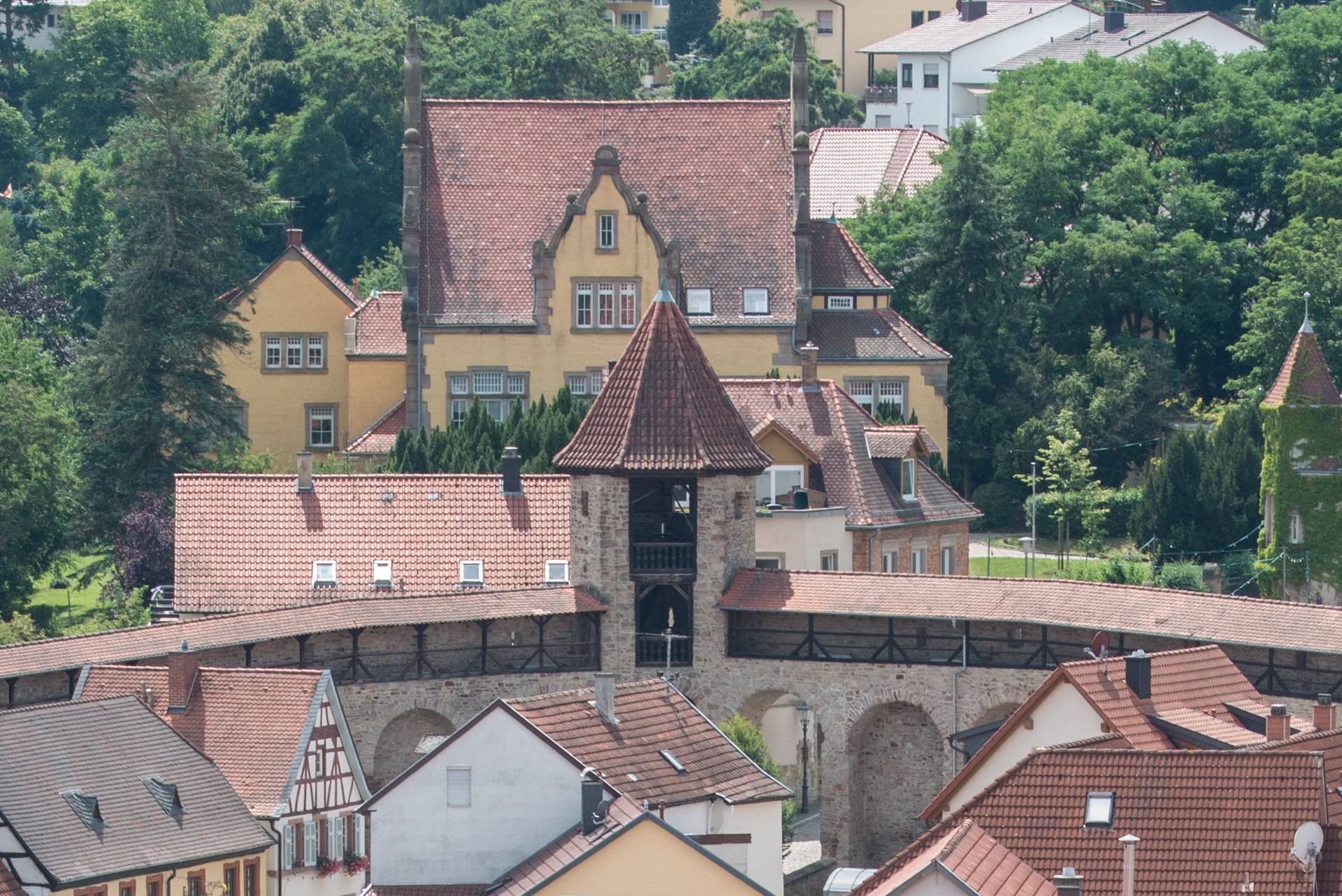 Vor hundert Jahren hätte er beinahe sein Leben eingebüßt. Denn damals wurde der Straßendurchgang geschaffen, indem man in die Stadtmauer einfach ein Loch hackte. Eine winzige Mehrheit im Stadtrat verhinderte zum Glück, dass der Turm gleich mit beseitigt wurde. Dieses Gebäude, frisch restauriert und neu bedeckt, ist als Eckpfeiler der Stadtmauer besonders eindrucksvoll und wichtig. Sechs Meter dick, zwölf Meter hoch. Eine Säule in der malerischen Mauer mit dem historischen Wehrgang.